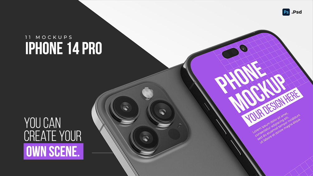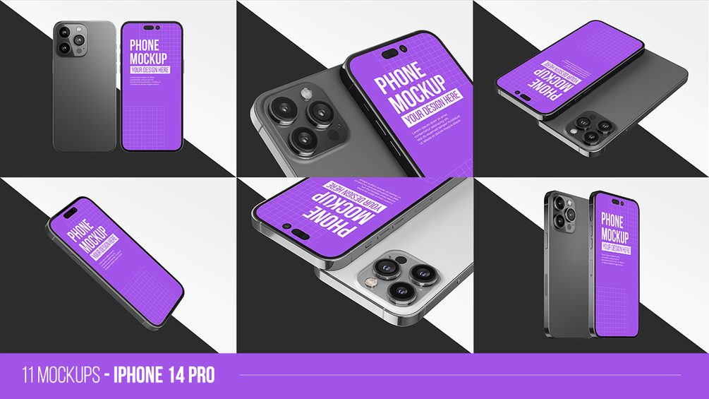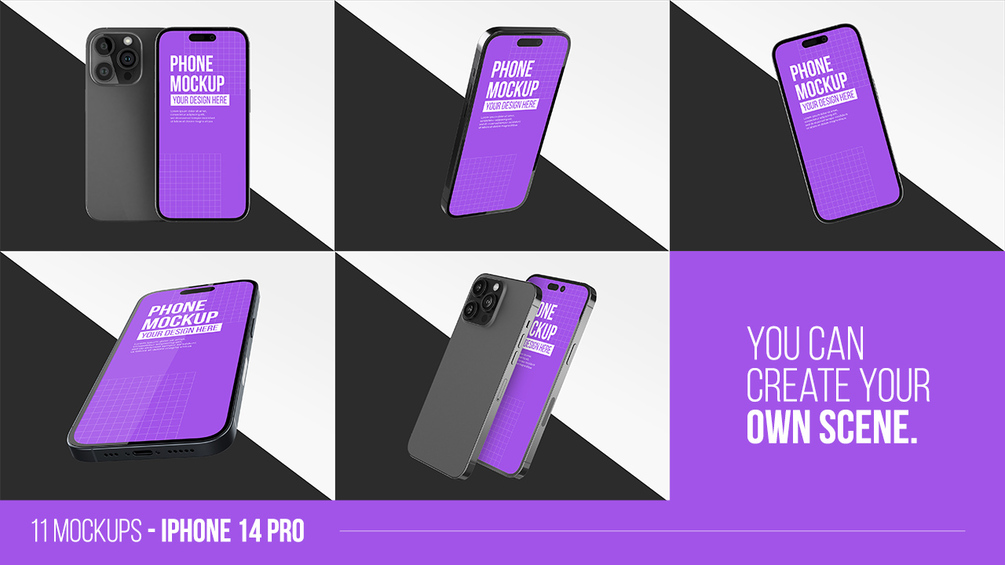 - Includes iPhone 14 Pro - 11 Scenes PSD high-quality files (All the scenes that you will see in the 2nd picture they already included in the purchase).